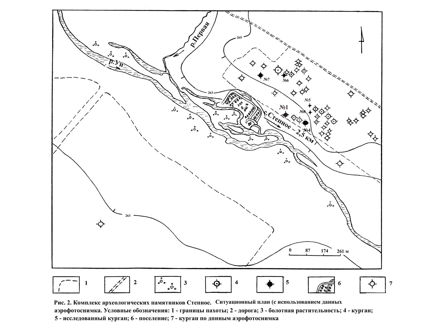 В 1986 г. Ия Михайловна Батанина открыла и дешифрировала по аэрофотоснимкам самый северный памятник так называемой «Страны городов», в которую входят компактно расположенные в Южном Зауралье поселения эпохи бронзы аркаимского типа – укрепленное поселение Степное. Рядом с поселением находится могильник Степное-1 – самый крупный могильник аркаимского времени из ныне известных. В 1999 году при заборе песка для строительства автозаправки «Лукойл» неподалеку от укрепленного поселения бронзового века в карьере, жителем села Степное бульдозеристом А.И. Нестеровым были обнаружены древние предметы – бронзовые украшения, глиняные сосуды, которые он передал сотрудникам ЧелГУ и заповедника «Аркаим». В следующем 2000 году у села Степное впервые начала работу стационарная экспедиция под руководством Д.Г. Здановича и Е.В. Куприяновой. На месте карьера обнаружился богатейший могильник аркаимского времени, названный Степное VII. С 2006 года археологическими раскопками исследовался также могильник Степное 25 и связанный с ним комплекс культовых сооружений бронзового века.